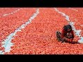 Türkiye'nin kurutulmuş domates ihracatında lider konumda bulunan Ege Bölgesi'nde hasadın ardından domatesler kurutma işlemi için güneşe serildi.