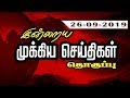 இன்றைய முக்கிய செய்திகளின் தொகுப்பு... | 26/09/2019 | News | Puthiyathalaimurai TV
